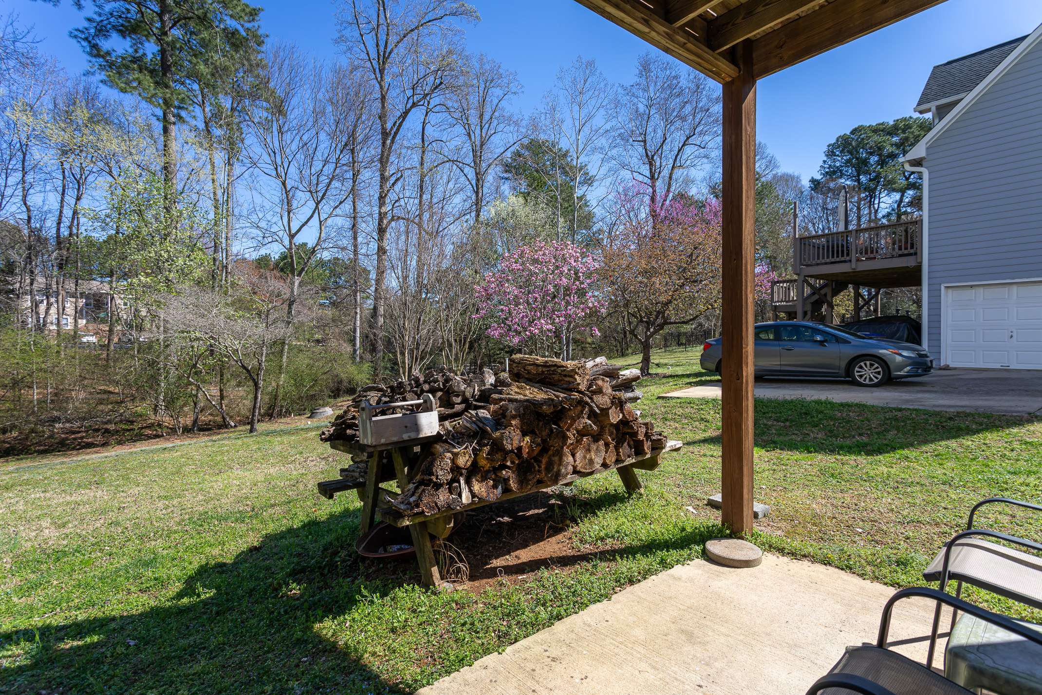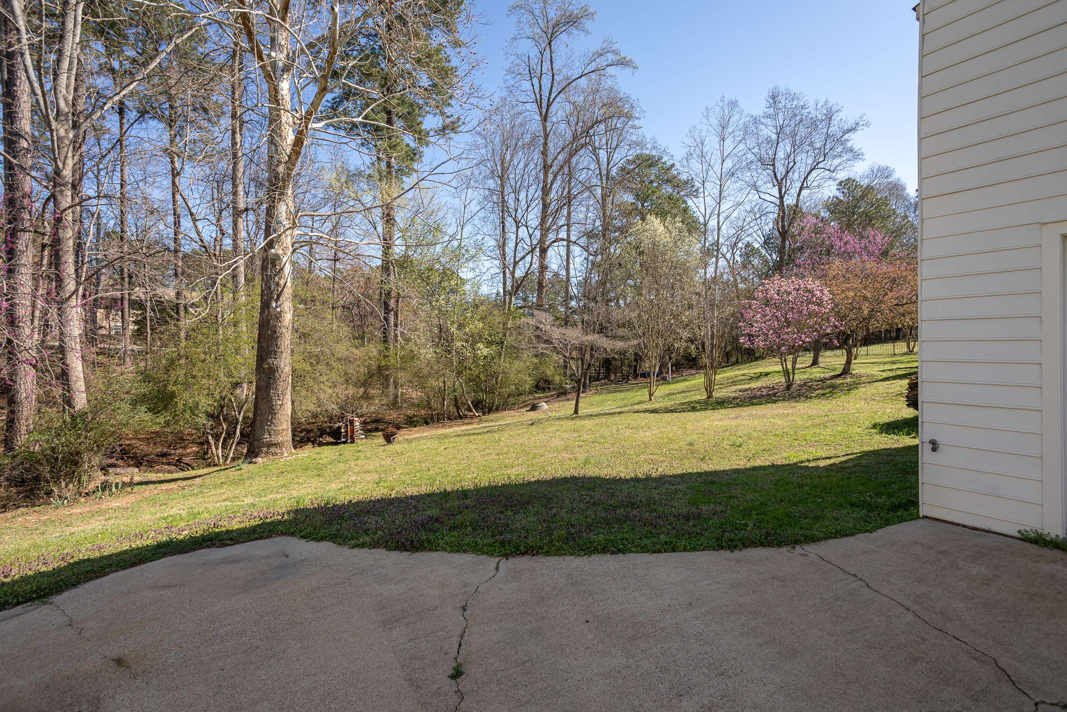 Ditch the car, you won't need it much when you own this lovely Downtown Wake Forest custom built home. This 4-level retreat offers tranquil views and abundant space to spread out and live comfortably. Home office? Check. Play room? Check. Music room? Check. Upon arrival you'll be instantly greeted by a full front porch. Not too many cars but you'll see dog walkers, and people enjoying a little exercise. Inside you'll enjoy a spacious living room, where a cozy wood burning fireplace creates a warm and welcoming atmosphere. The main level also features a covered deck, ideal for enjoying the peaceful surroundings. Upstairs, the expansive owner's suite boasts a large bathroom with a separate soaking tub and shower, offering a private retreat. Two additional bedrooms provide ample space for family or guests. Venture to the finished attic, a versatile carpeted space perfect for a home office, playroom, or flex area. The basement offers extra storage or could be an additional room and connects seamlessly to the two-car garage. Outside, a small creek and the Kiwanis Park Greenway create a serene backdrop, enhancing the home's peaceful appeal. Located approximately ½ mile to downtown Wake Forest, Community Library, Franklin Academy, and so much more. With easy access to Highway 98, this home blends comfort, convenience, and natural beauty. Updates include some interior paint (2025), exterior paint (2022), boxing/siding repairs (2022), a new roof (2020), AC/furnace (2017) and Water Heater replacement (2012). Estimates available for flooring upgrades upon request.