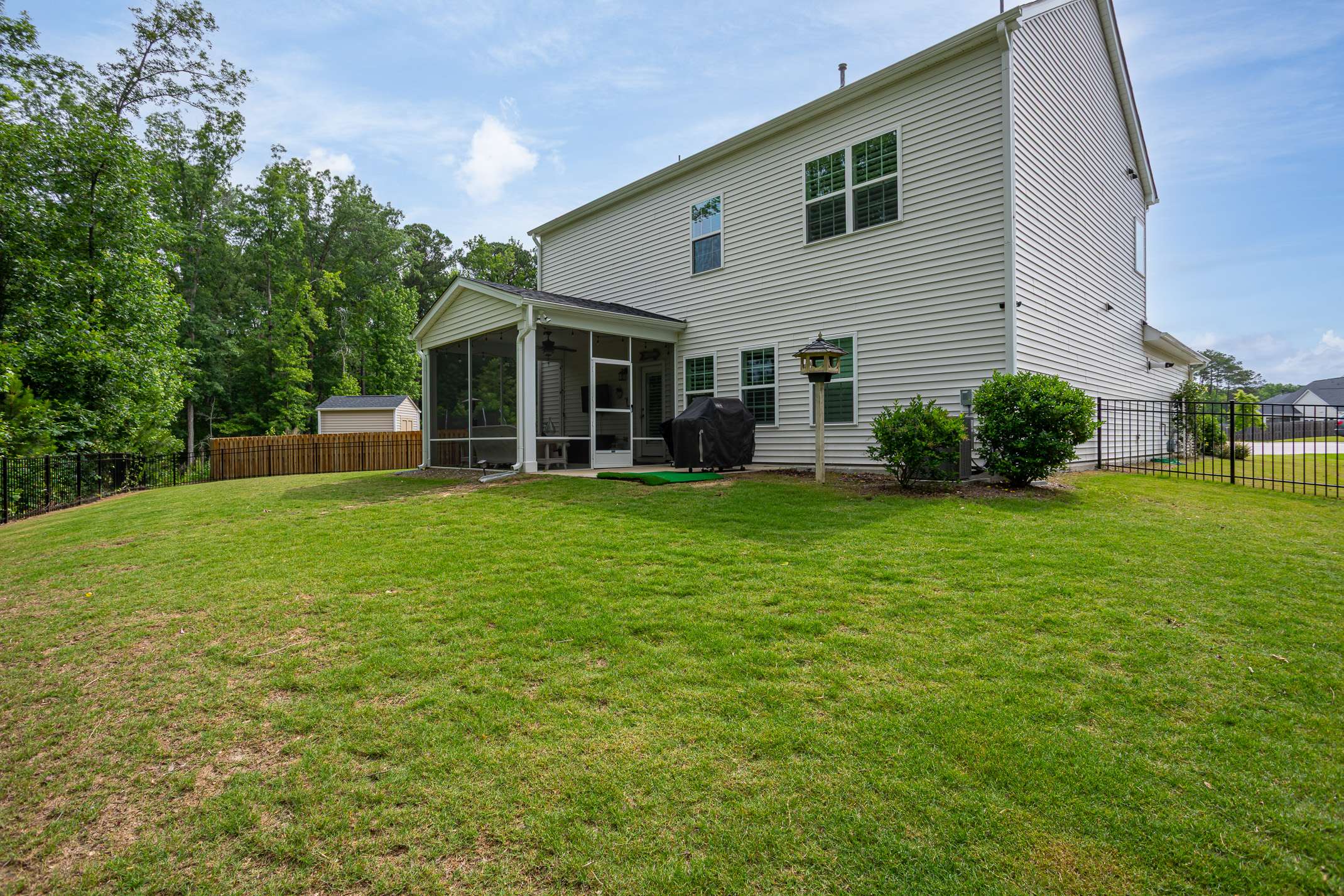 2521 Heathland Farm Drive delivers a rare combination of thoughtful upgrades and everyday function. Built in 2020, this 4-bedroom, 3-bath home features the Mayflower floor plan, offering nearly 2,500 sq ft of purposeful living space. A dedicated study with French doors sits just off the entry, while the open main floor connects dining, kitchen, and living areas with seamless flow. The kitchen features quartz countertops, under-cabinet lighting, a 5-burner gas cooktop, convection oven, and upgraded cabinetry. Upstairs includes a large loft for flexible use—media, work, or play. Additional highlights include oak stair treads with iron railing, plantation shutters, a screened porch, and a fenced backyard. This home has been carefully maintained and customized by original owners from day one. Located in the Meadowbrook community, residents enjoy access to a pool, clubhouse, fitness center, and proximity to downtown Fuquay-Varina and local favorites like The Mason Jar Tavern and Garibaldi Trattoria.