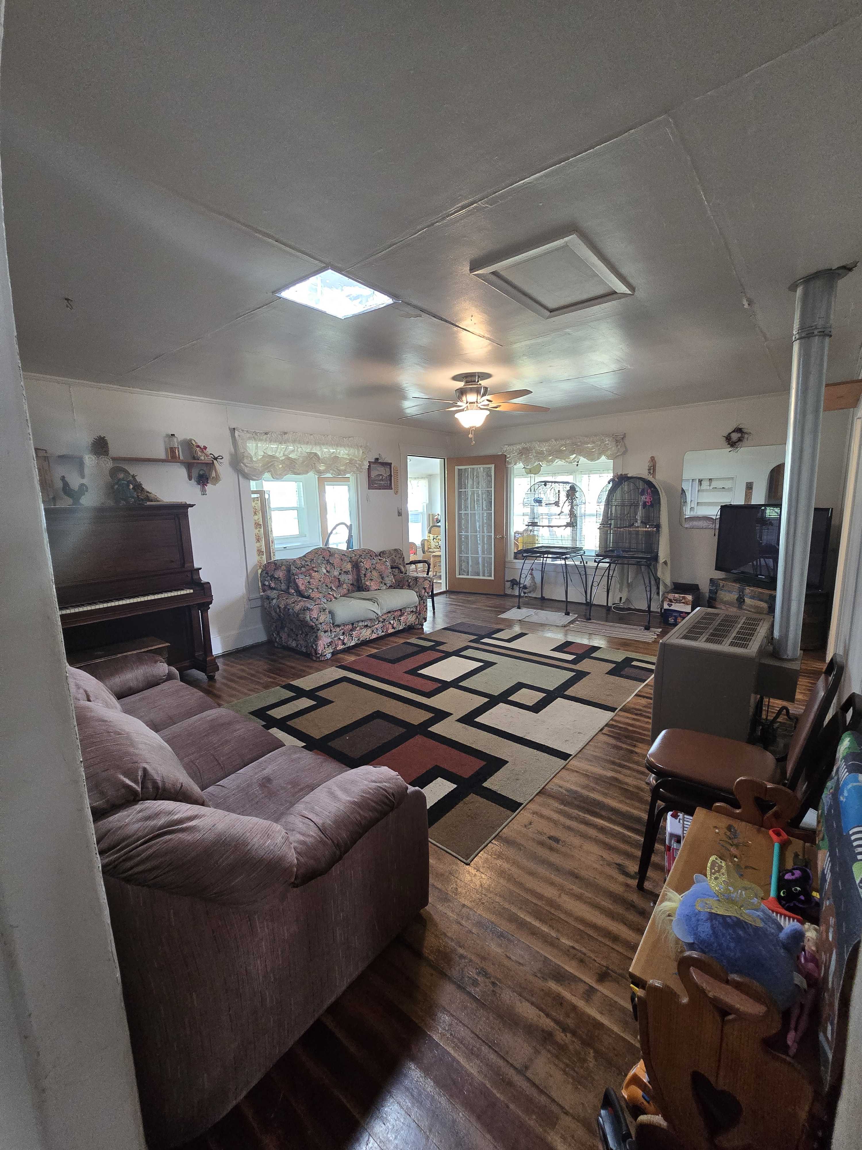 This character-filled home is full of potential and ready for someone with vision. Located in a peaceful, quiet area, it offers solid structure, great natural light, and a layout that invites creative updates. A spacious enclosed front porch welcomes you, ideal as a sunroom, mudroom, or bonus sitting area. It adds charm and usable space without being counted in the square footage. Inside, original wood flooring remains in parts of the home and could be beautifully restored with some refinishing. While the house does need work, key updates like a steel roof installed around 2017 and newer windows provide a strong starting point. The attached garage is a pole barn style structure with a dirt floor. It includes an oversized garage/shop (24 x 36) and has room for storage, a workshop, or even a project car. If you are looking for a fixer upper with solid bones, character, and room to grow, this one is worth a look. Info deemed reliable but not guaranteed. Buyer/buyer agent to verify.